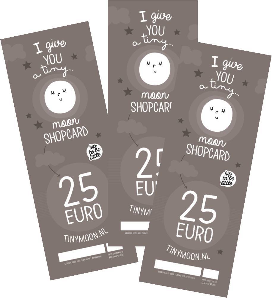 Account aanmakenVind je het lastig voor iemand anders iets uit te zoeken of weet je nog niet wat 'het' wordt, maar wil je iemand heel blij maken met een tinymoon item? Geef dan een tinymoon shopcard cadeau! Altijd leuk om te geven en om te krijgen.