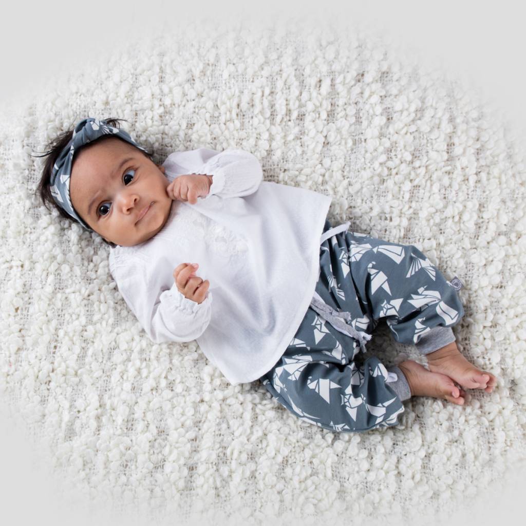 Account aanmakenHaarbandjes zijn o zo schattig. En of! Dit haarbandje in jeanslook van sweatstof is een coole accessoire bij iedere outfit en vooral in combinatie met de bijpassende harem, drop crotch 'White Wings'. Vanaf de geboorte tot wat ouder, ze zijn altijd zo lief. Deze haarband heeft een mooie knoop aan de voorzijde en is handgemaakt van een lekkere, zachte rekbare tricot. Staat leuk, draagt fijn! En je hebt er ook lekker lang plezier van, want het bandje rekt mee.